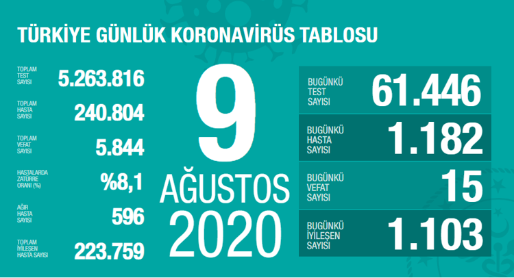 9 Agustos Koronavirus Coronavirus Tablosu Turkiye Vaka Ve Olum Sayisi Istanbul Ankara Konya Il Il Koronavirus Son Durum Haritasi Haberler Hurriyet
