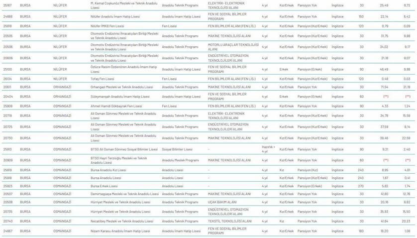 Bursa Nitelikli Okul Yuzdelik Dilimleri Ve Lgs Taban Puanlari Egitim Haberleri