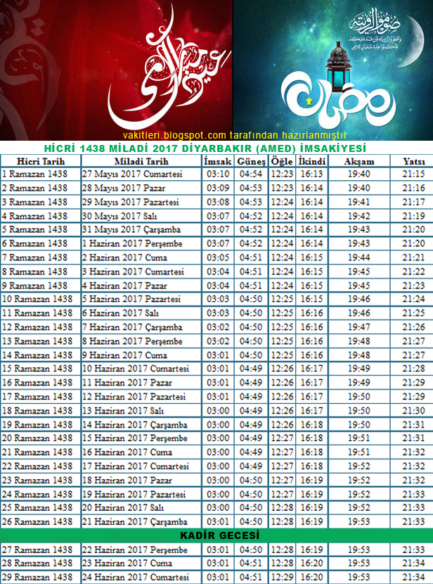 Vakitleri Diyarbakir Amed Icin Iftar Ve Sahur Vakitleri 2017