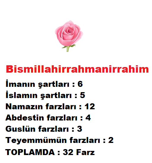 32 Farz Imanin Sartlari 6 Islamin Sartlari 5 Namazin Farzlari 12