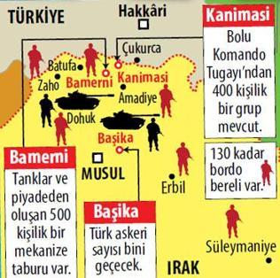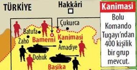 Kanimasi ye ise bordo bereli komando takviyesi yapılacak hakkâri. Göçü durdurmak isteyen türkiye kuzey irak ta 2 hat boyunca 12 kamp kuracak. 1995 de dönemin irak kürdistan demokrat partisi ikyb lideri mesud barzani yle yaptığı anlaşma uyarınca sınırından yaklaşık 20 kilometre içeride ana üs bamerni ve bamerni ye bağlı olarak seramiş kanimasi begova amediya ve batufa da üsler kurdu. Irak taki bamerni ve kanimasi de konuşlu iki türk üssü genişletilecek.