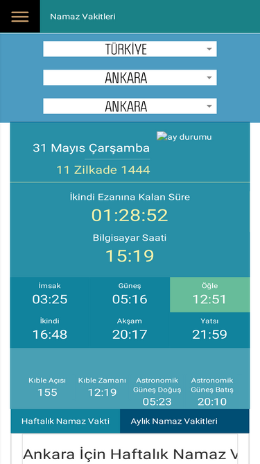 Diyanet Isleri Baskanligi Ankara Icin Namaz Vakti