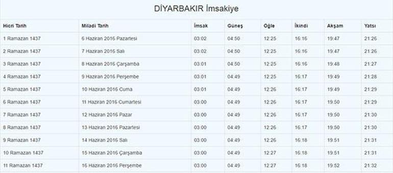 Diyarbakir Iftar Vakti Bugun Kacta Sahur Saatleri Diyanet Imsakiye 2014 Internet Haber