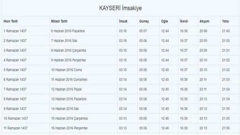 Kayseri ilimiz için diyanet i̇şleri başkanlığı tarafından 2016 yılı ramazan i̇msakiyesini bu sayfadan sizlerle paylaşıyoruz 2016 kayseri i̇msakiyesi sayesinde iftar vakitleri imsak vakitleri sahur vakitleri ve namaz vakitleri her an parmaklarınızın ucunda olacak.