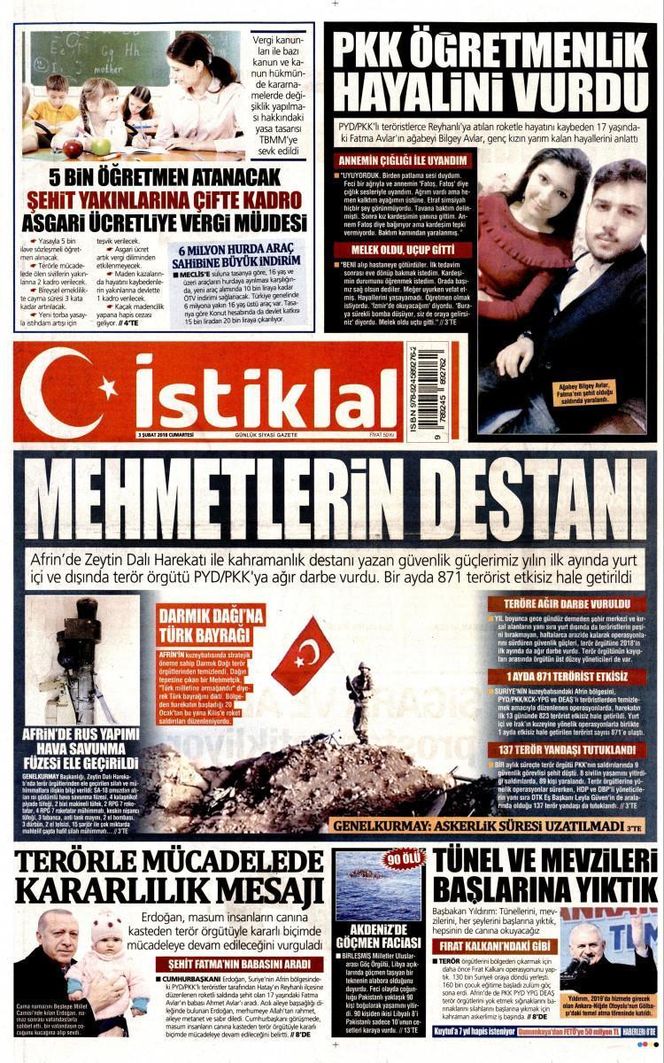 Istiklal Gazetesi Gazetesi Subat 2018 Mansetleri