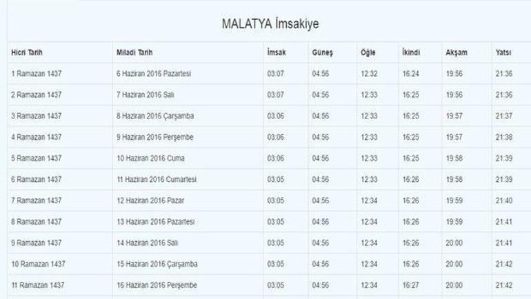 Malatya Iftar Ve Sahur Vakti 2016 Malatya Imsakiye