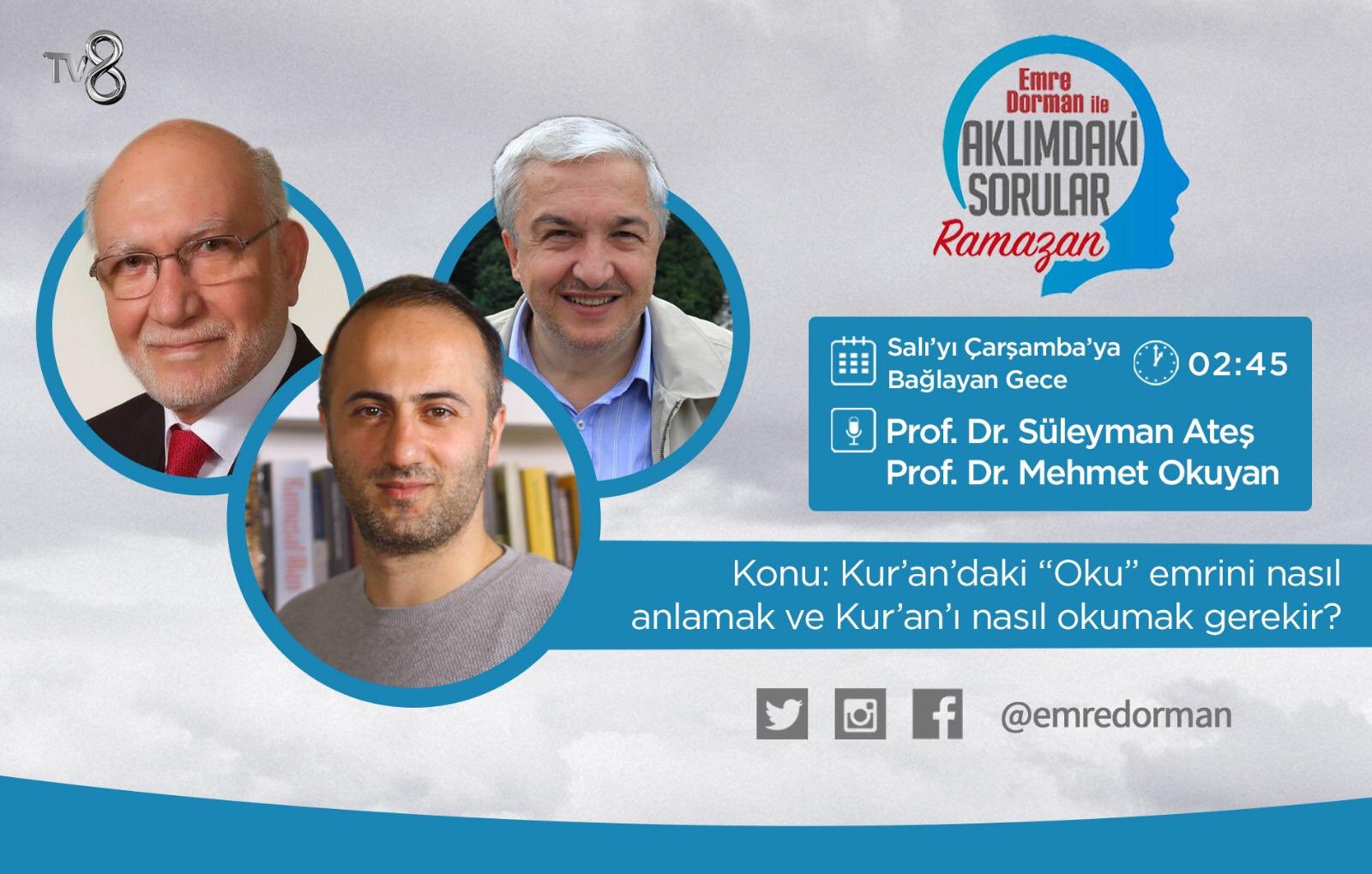 Mehmet Okuyan On Twitter Kur An Daki Oku Emri Konulu Tv8 Deki Aklimdaki Sorular Ramazan Programimiza Bu Gece 02 45 Te Prof Dr Suleyman Ates Hocam Konuk Olacak Insallah Https T Co Rzutnywaql