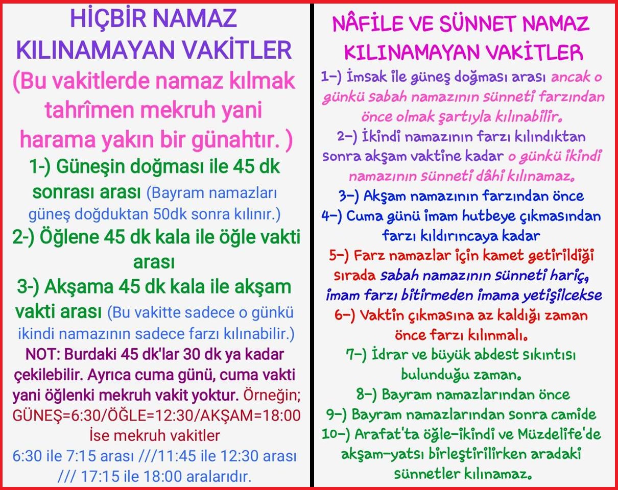 Namaz Kilinmasi Yasak Olan Vakitler Nelerdir Pdf