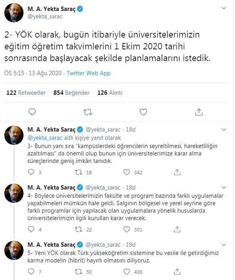 Son Dakika Haberler Universiteler Ne Zaman Acilacak Yok Baskani Acikladi Haberler Hurriyet