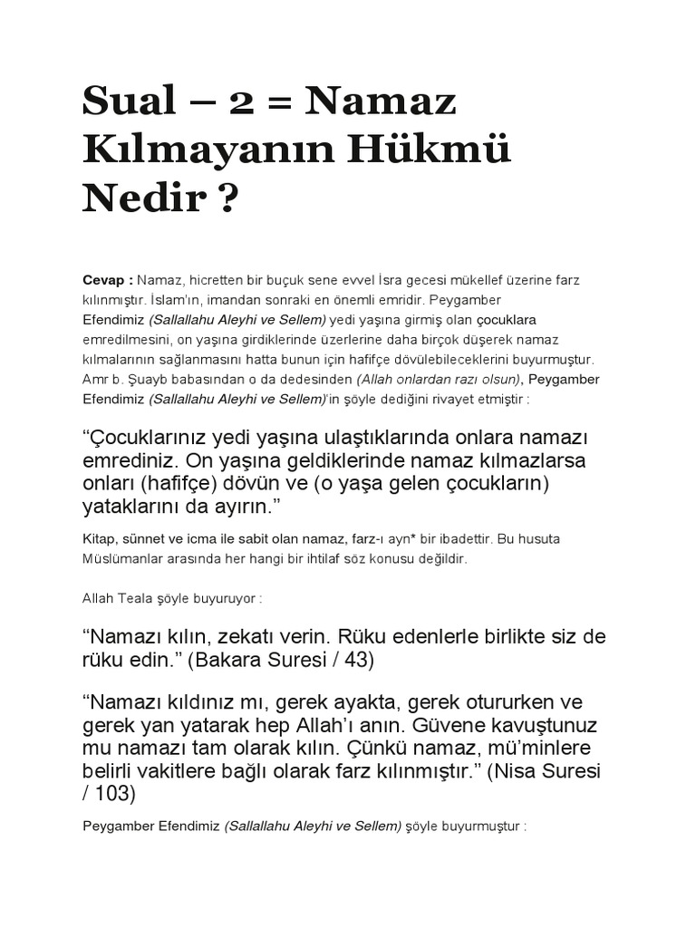 Sual 2 Namaz Kilmayanin Hukmu Nedir