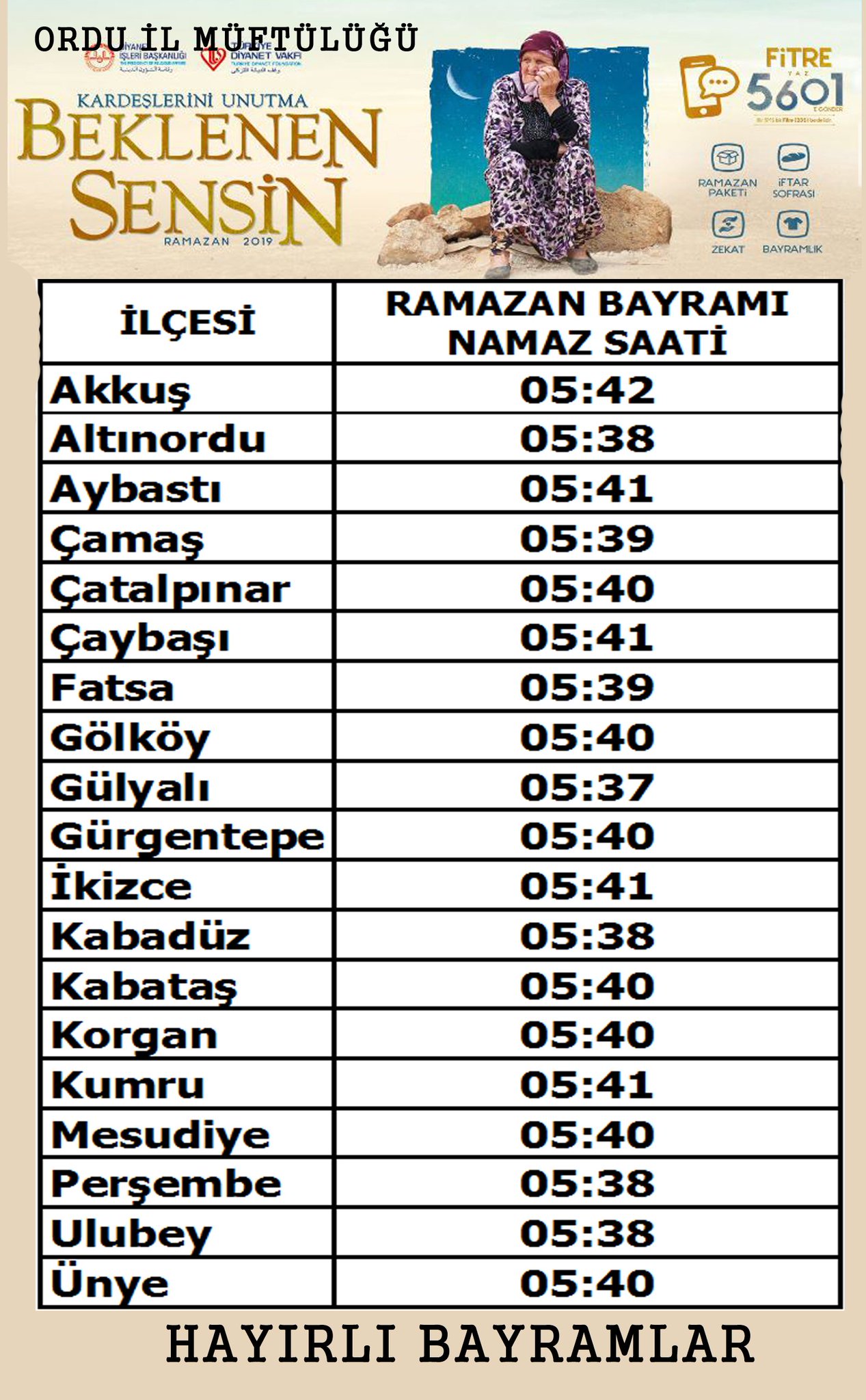 Ordu Muftulugu On Twitter Ordu Il Ve Ilcelerine Ait Ramazan Bayrami Namaz Saatleri Hayirlibayramlar