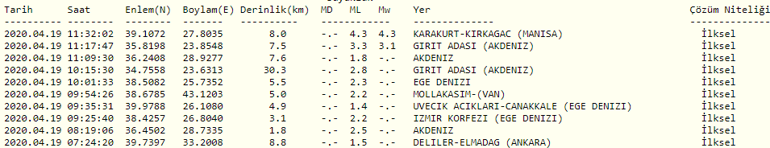 Deprem Mi Oldu Afad Kandilli Rasathanesi 10 Nisan Son Depremler Listesi Haberler Milliyet