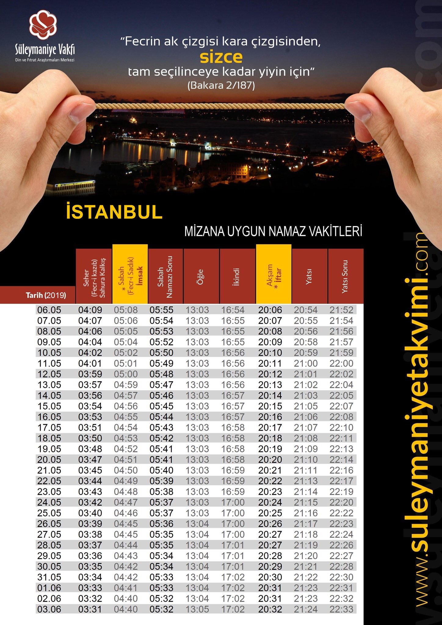 Imsakiye Suleymaniye Vakfi Istanbul Reklamsiz