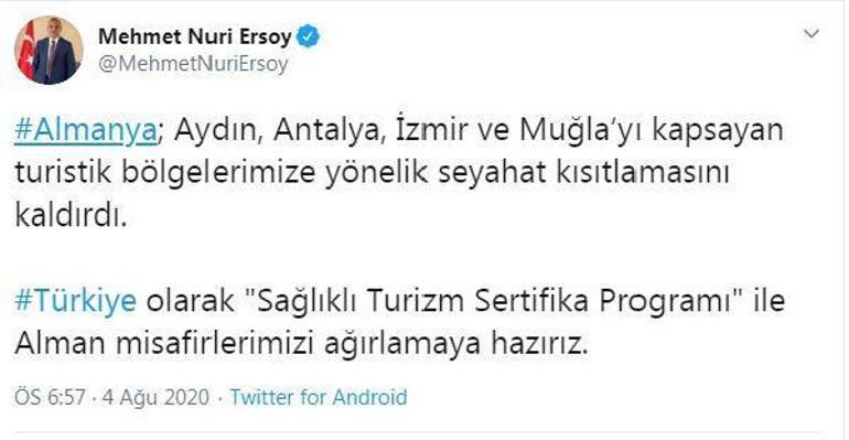 Almanya Dan Flas Turkiye Karari 4 Il Icin Seyahat Yasagi Kaldirildi Dunyadan Son Haberler