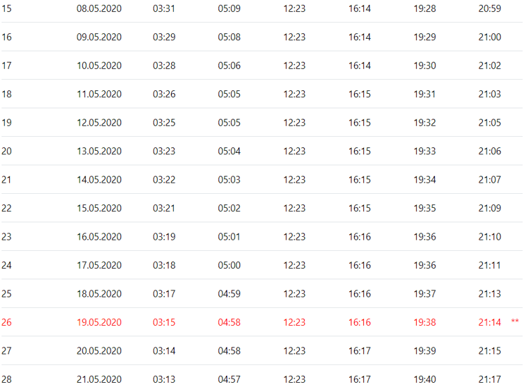 Tunceli Icin 2020 Ramazan Imsakiyesi